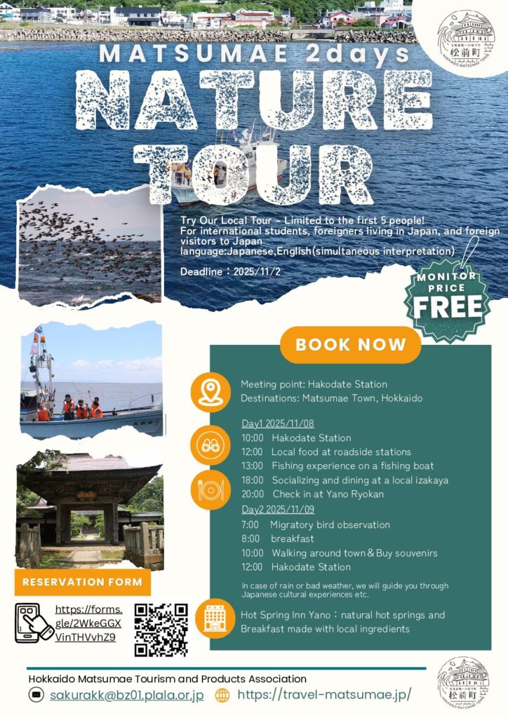 松前町の地域資源を活かした外国人向けのモニターツアーを企画しました。